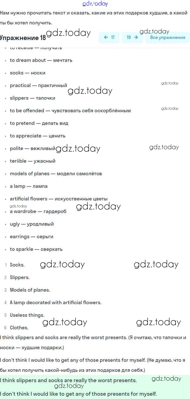 На страницах сайта gdz.today вы найдете учебный и вспомогательный материал, направленный на улучшения знаний школьной программы. ГДЗ - онлайн мир знаний Решение к Unit 12. Shopping Часть 2 18 Учебнику по Английскому языку для 6 класса Вербицкая, Гаярделли Вентана-граф Forward 2017