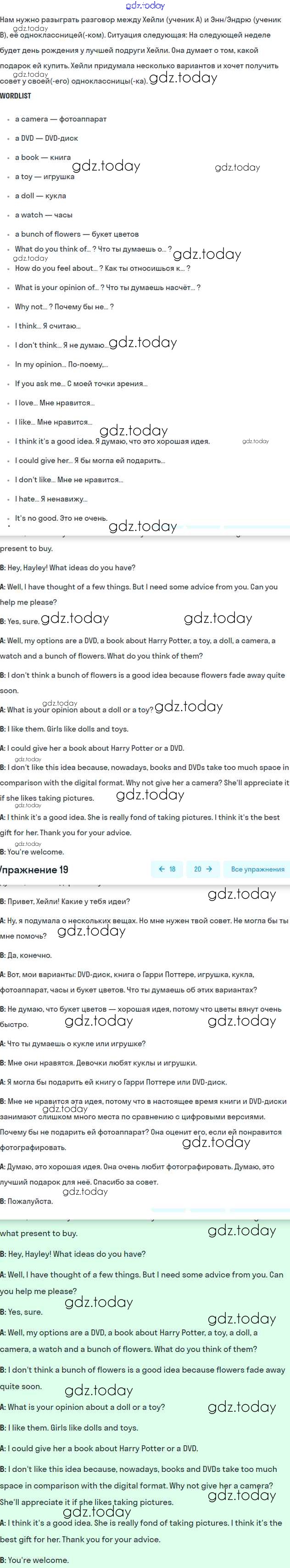 На страницах сайта gdz.today вы найдете учебный и вспомогательный материал, направленный на улучшения знаний школьной программы. ГДЗ - онлайн мир знаний Решение к Unit 12. Shopping Часть 2 19 Учебнику по Английскому языку для 6 класса Вербицкая, Гаярделли Вентана-граф Forward 2017