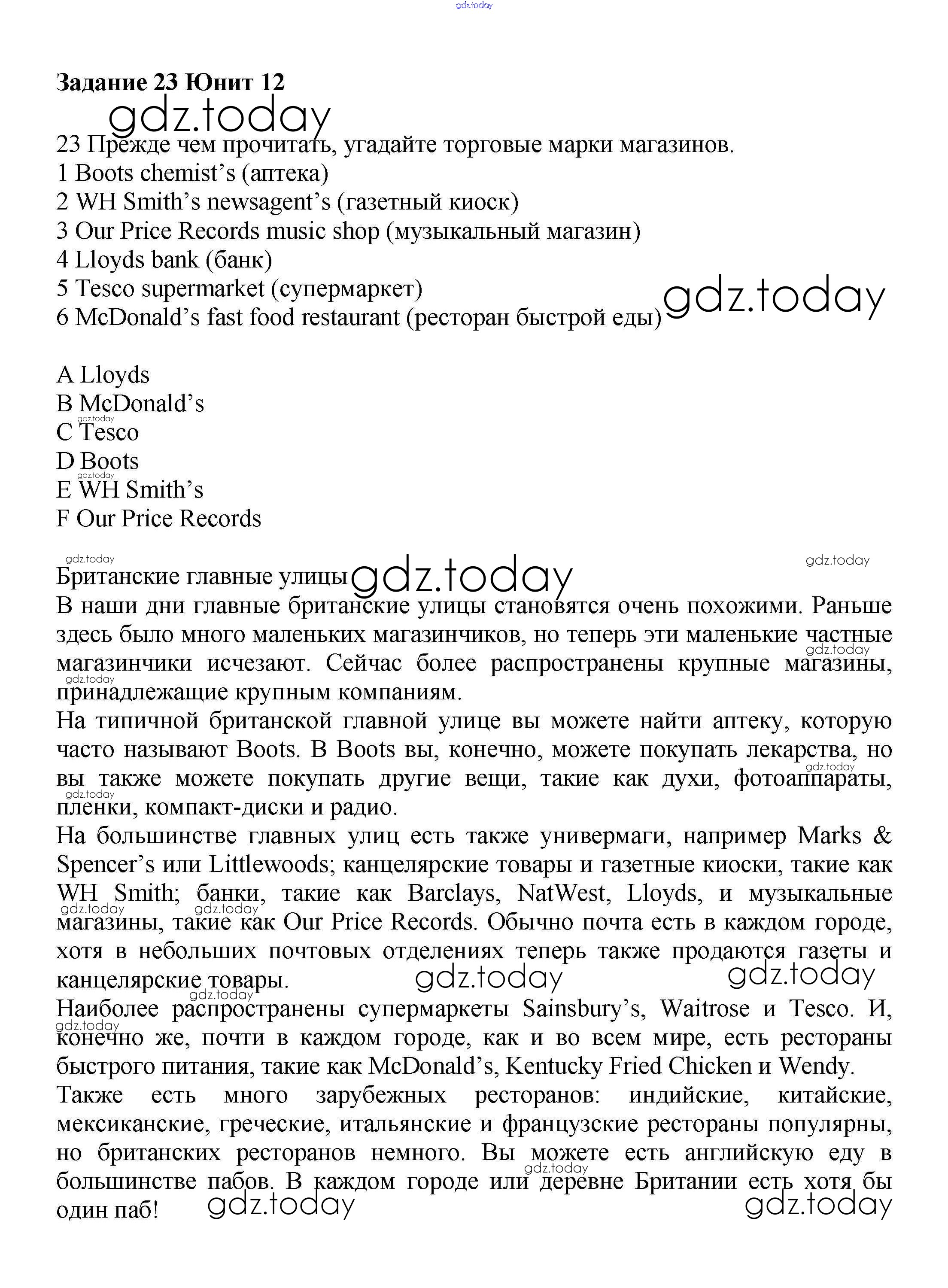 На страницах сайта gdz.today вы найдете учебный и вспомогательный материал, направленный на улучшения знаний школьной программы. ГДЗ - онлайн мир знаний Решение к Unit 12. Shopping Часть 2 23 Учебнику по Английскому языку для 6 класса Вербицкая, Гаярделли Вентана-граф Forward 2017