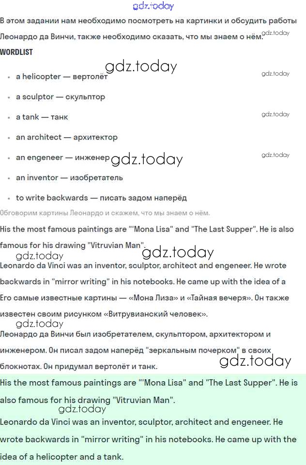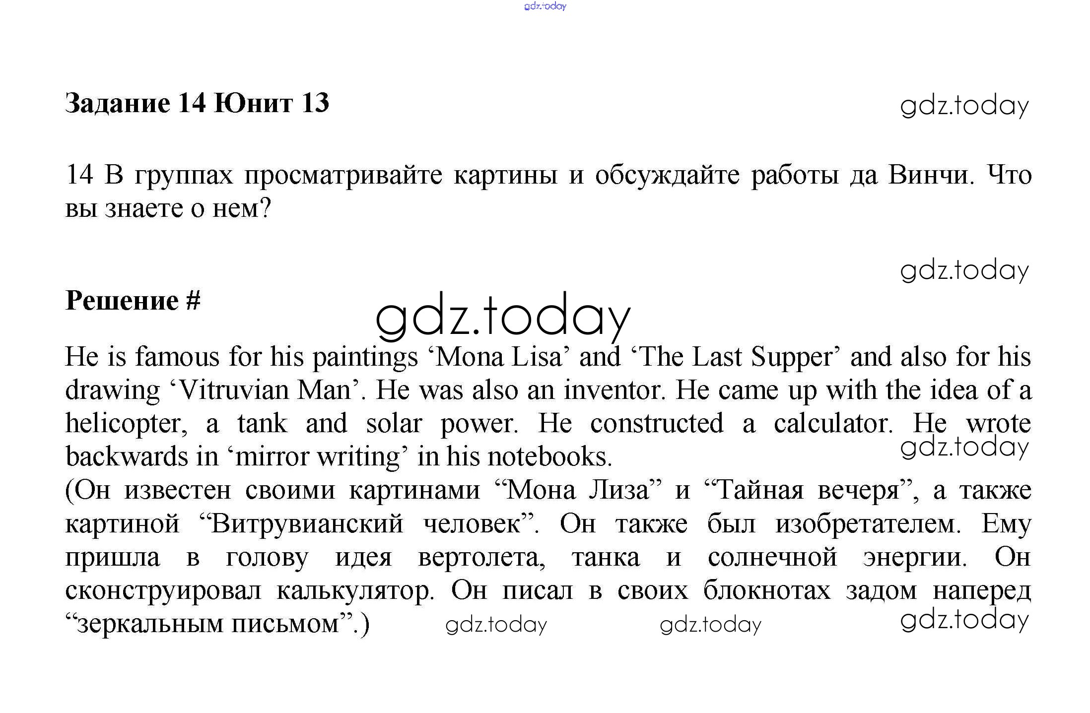 На страницах сайта gdz.today вы найдете учебный и вспомогательный материал, направленный на улучшения знаний школьной программы. ГДЗ - онлайн мир знаний Решение к Unit 13. Famous people Часть 2 14 Учебнику по Английскому языку для 6 класса Вербицкая, Гаярделли Вентана-граф Forward 2017
