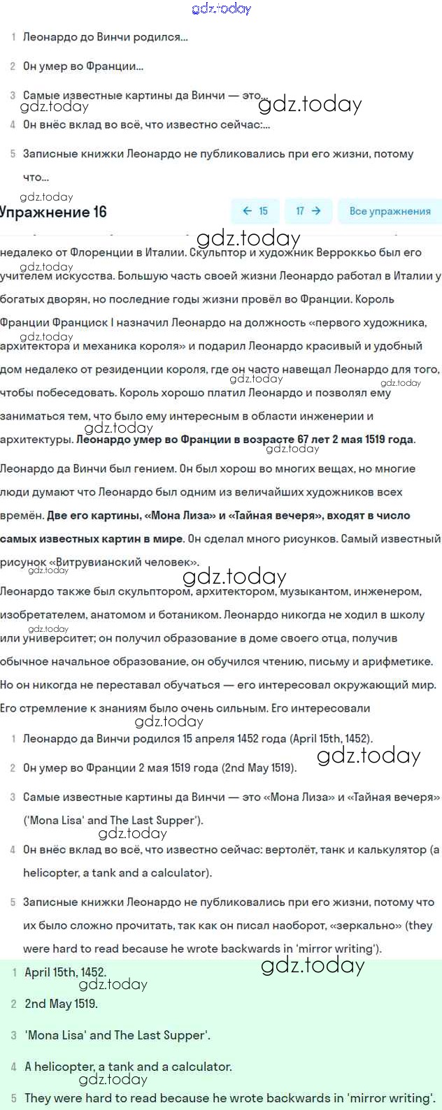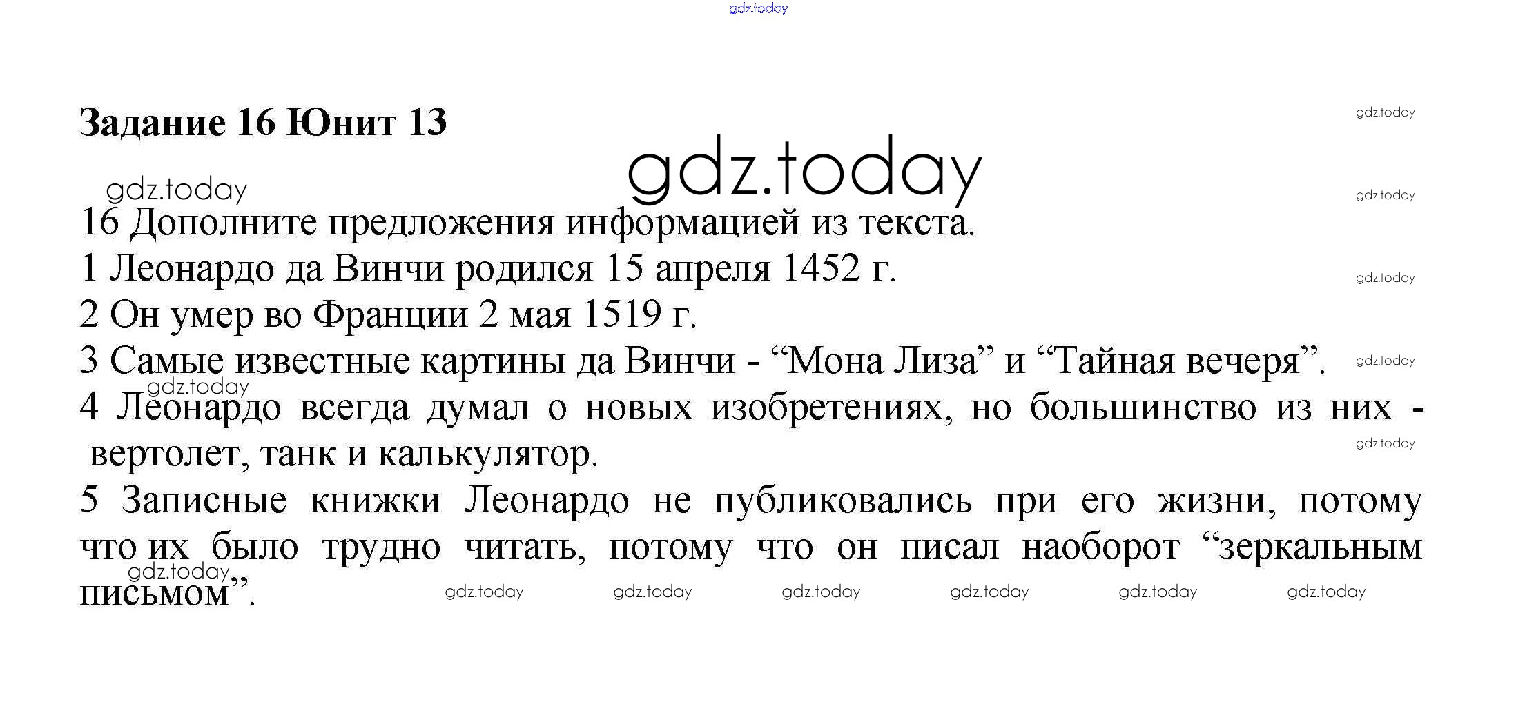 На страницах сайта gdz.today вы найдете учебный и вспомогательный материал, направленный на улучшения знаний школьной программы. ГДЗ - онлайн мир знаний Решение к Unit 13. Famous people Часть 2 16 Учебнику по Английскому языку для 6 класса Вербицкая, Гаярделли Вентана-граф Forward 2017