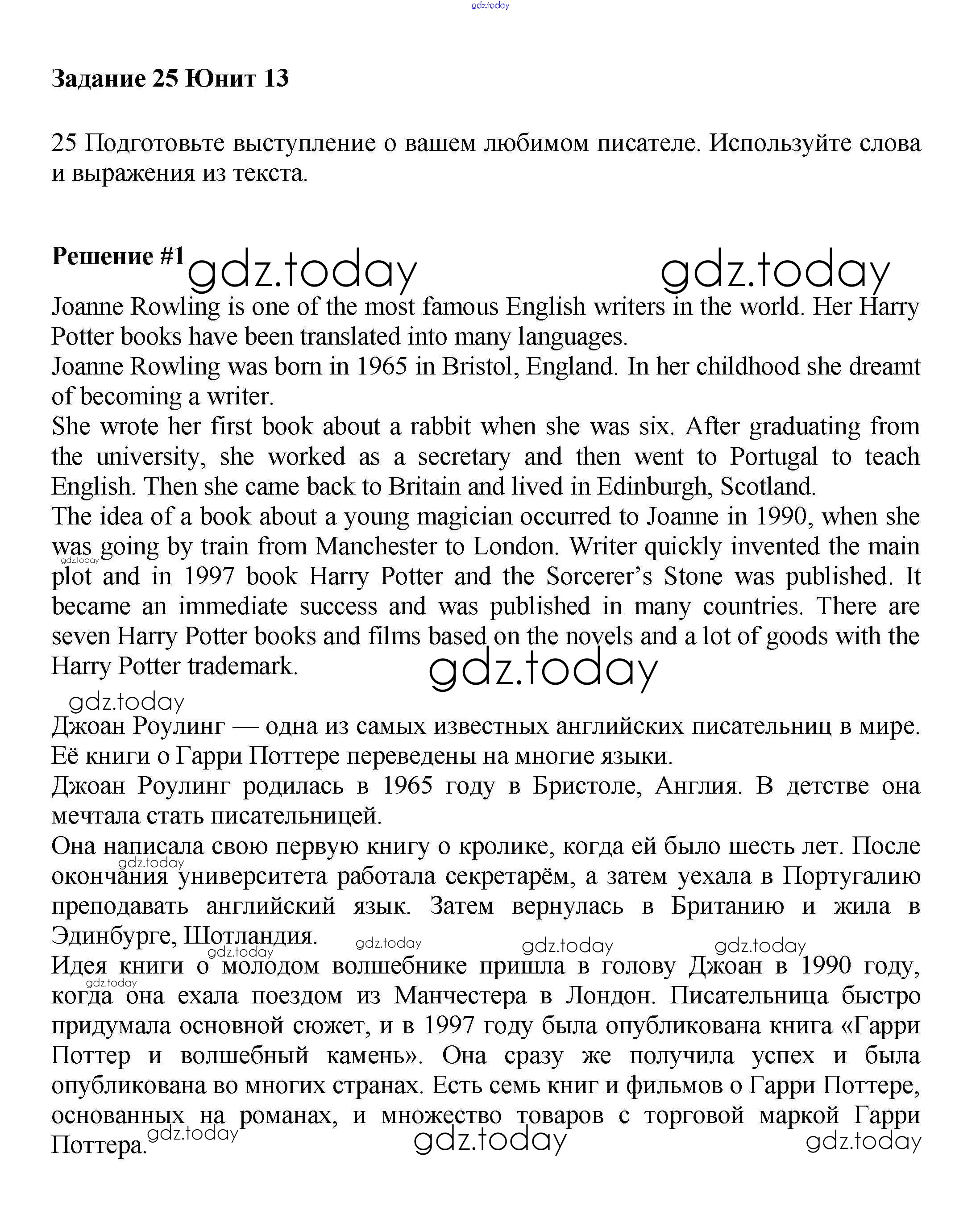 На страницах сайта gdz.today вы найдете учебный и вспомогательный материал, направленный на улучшения знаний школьной программы. ГДЗ - онлайн мир знаний Решение к Unit 13. Famous people Часть 2 25 Учебнику по Английскому языку для 6 класса Вербицкая, Гаярделли Вентана-граф Forward 2017