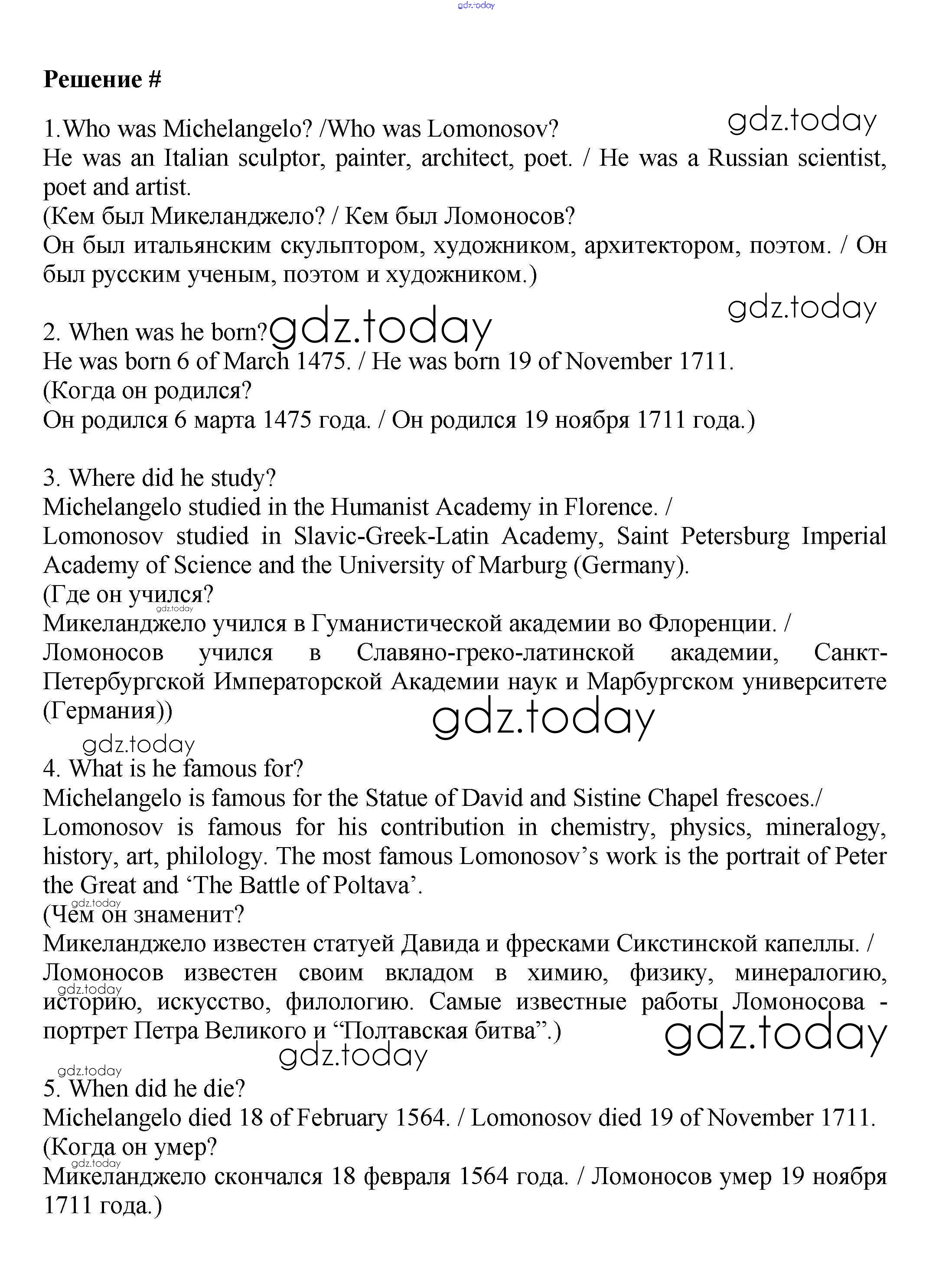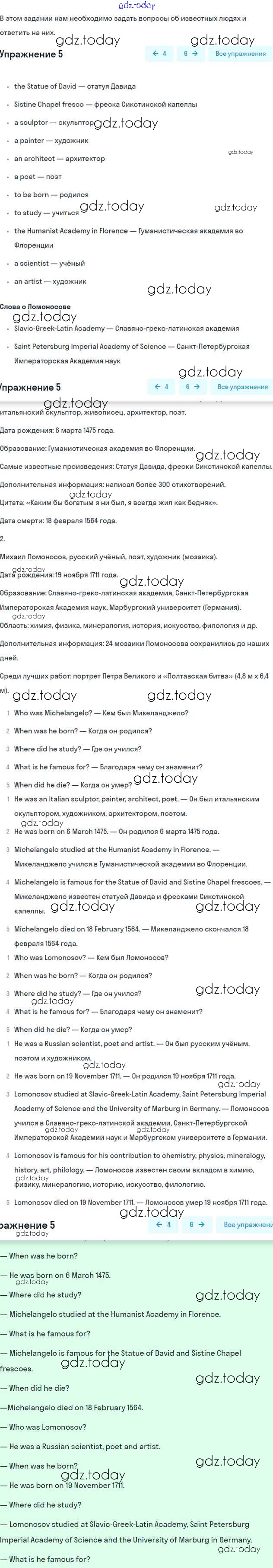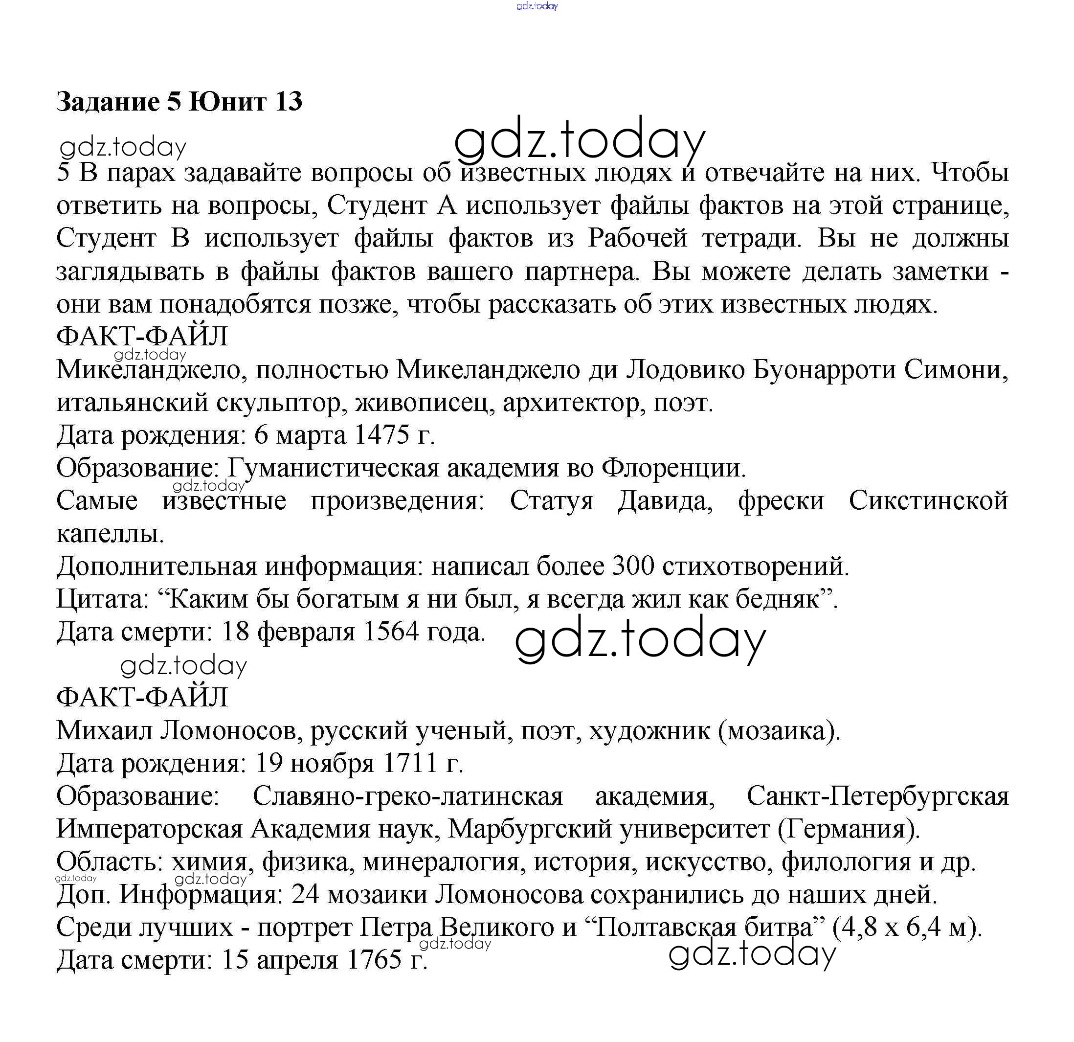 На страницах сайта gdz.today вы найдете учебный и вспомогательный материал, направленный на улучшения знаний школьной программы. ГДЗ - онлайн мир знаний Решение к Unit 13. Famous people Часть 2 5 Учебнику по Английскому языку для 6 класса Вербицкая, Гаярделли Вентана-граф Forward 2017