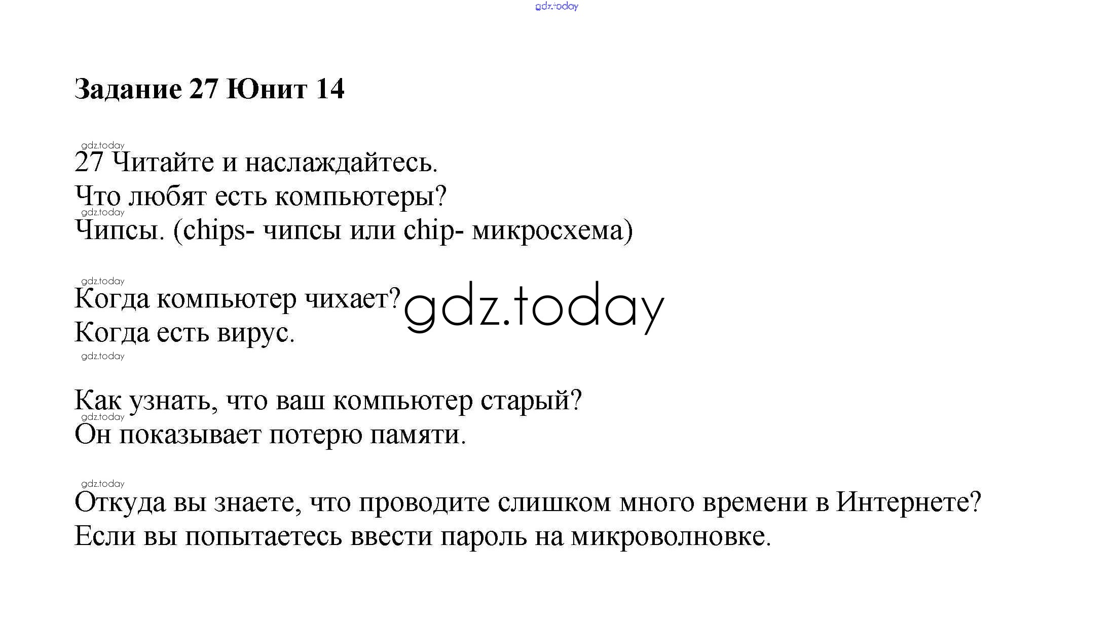 На страницах сайта gdz.today вы найдете учебный и вспомогательный материал, направленный на улучшения знаний школьной программы. ГДЗ - онлайн мир знаний Решение к Unit 14. The world of computers Часть 2 27 Учебнику по Английскому языку для 6 класса Вербицкая, Гаярделли Вентана-граф Forward 2017