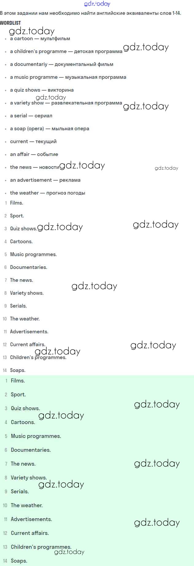 На страницах сайта gdz.today вы найдете учебный и вспомогательный материал, направленный на улучшения знаний школьной программы. ГДЗ - онлайн мир знаний Решение к Unit 15. TV watching Часть 2 1 Учебнику по Английскому языку для 6 класса Вербицкая, Гаярделли Вентана-граф Forward 2017