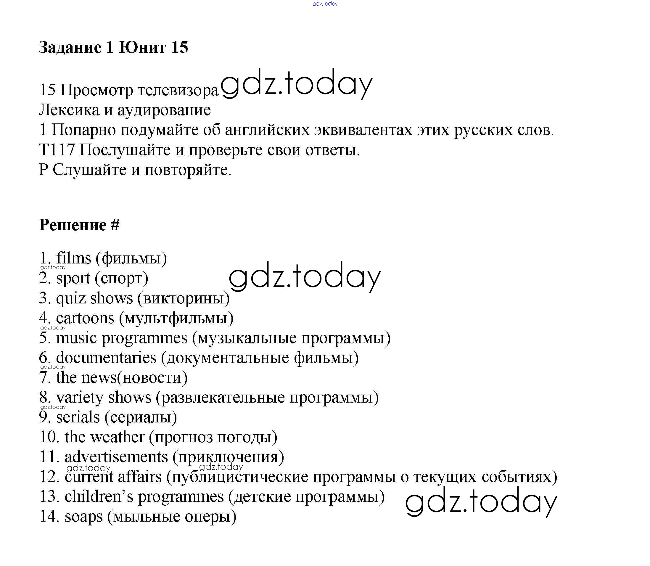 Ответы к Решение к Unit 15. TV watching Часть 2 1 Учебнику по Английскому языку для 6 класса Вербицкая, Гаярделли Вентана-граф Forward 2017