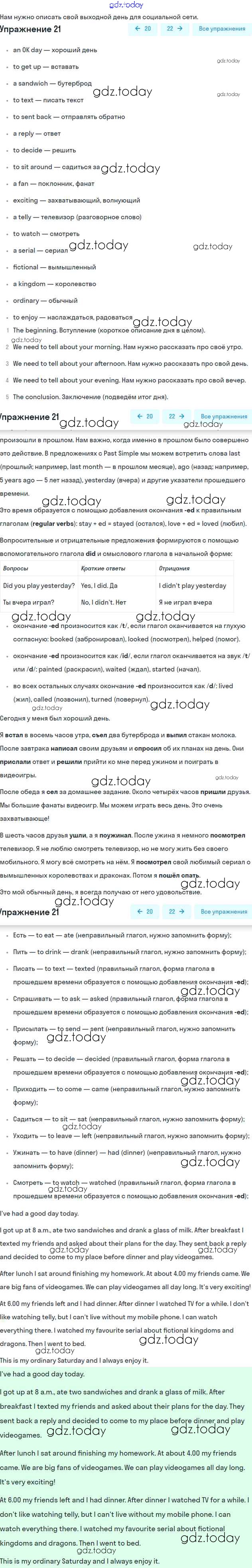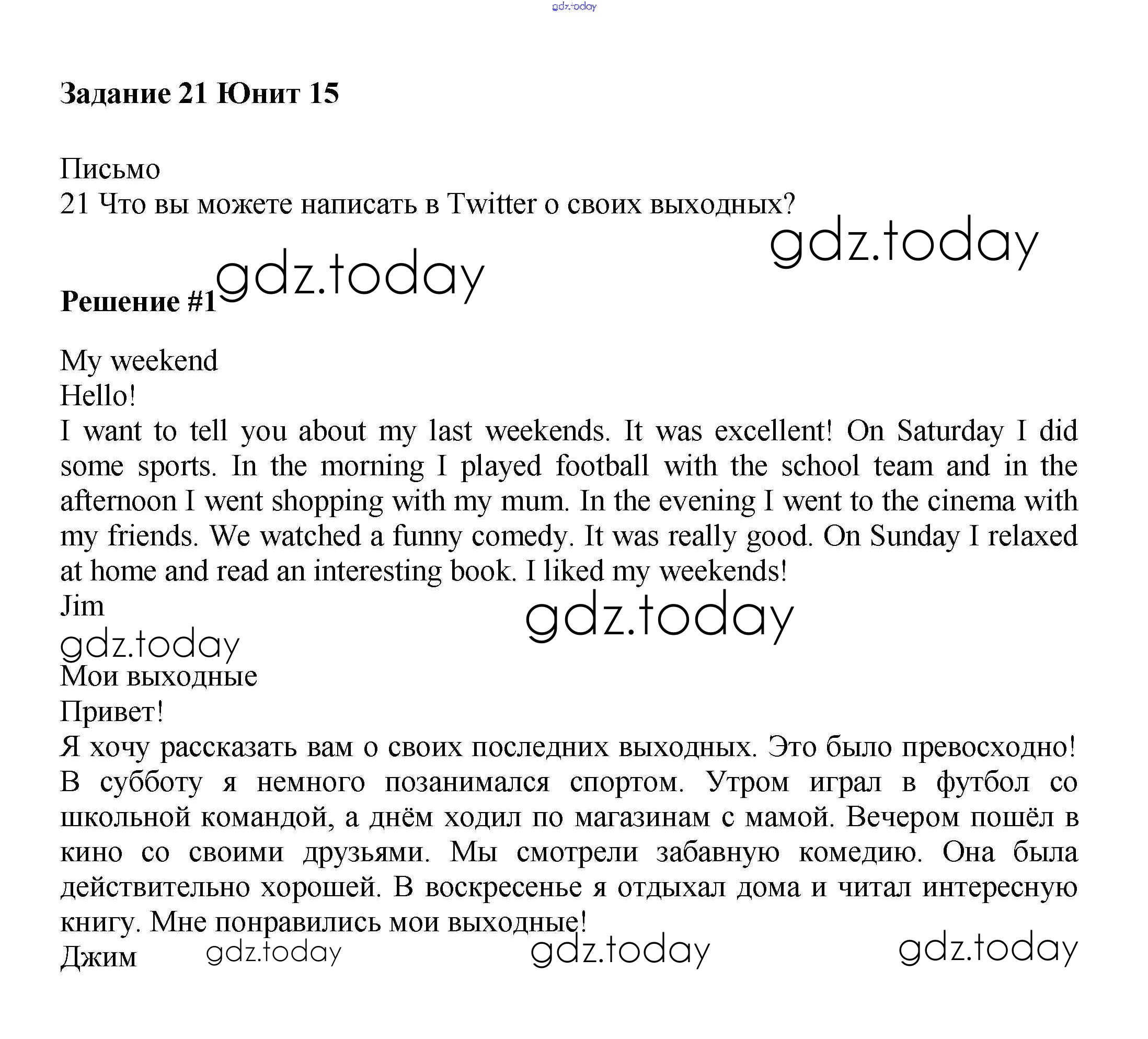 На страницах сайта gdz.today вы найдете учебный и вспомогательный материал, направленный на улучшения знаний школьной программы. ГДЗ - онлайн мир знаний Решение к Unit 15. TV watching Часть 2 21 Учебнику по Английскому языку для 6 класса Вербицкая, Гаярделли Вентана-граф Forward 2017