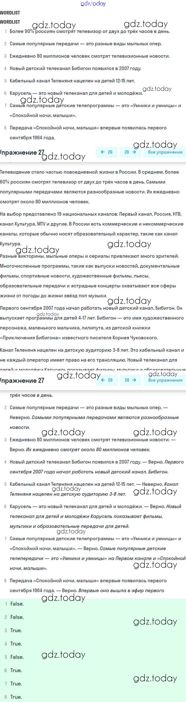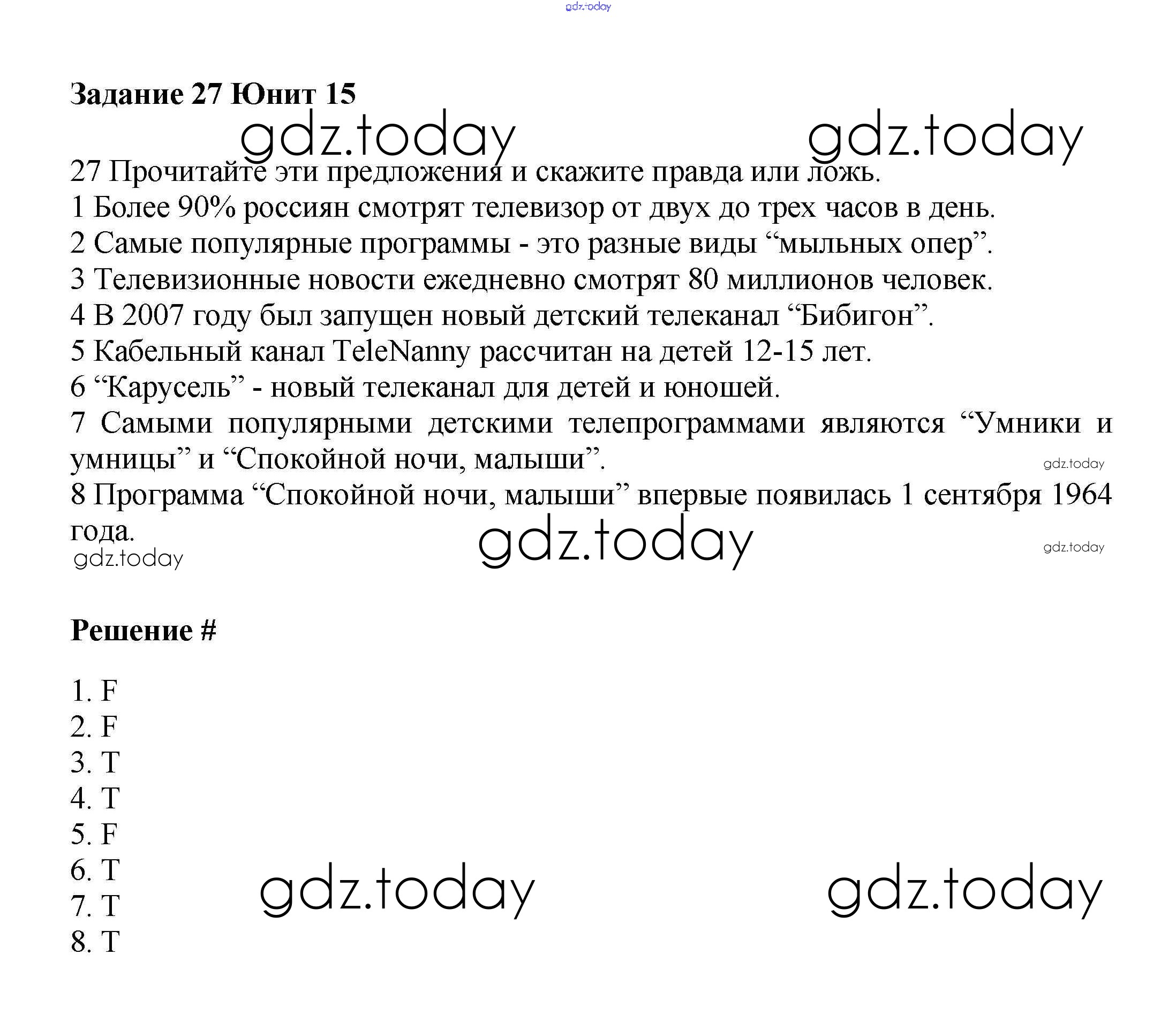 На страницах сайта gdz.today вы найдете учебный и вспомогательный материал, направленный на улучшения знаний школьной программы. ГДЗ - онлайн мир знаний Решение к Unit 15. TV watching Часть 2 27 Учебнику по Английскому языку для 6 класса Вербицкая, Гаярделли Вентана-граф Forward 2017