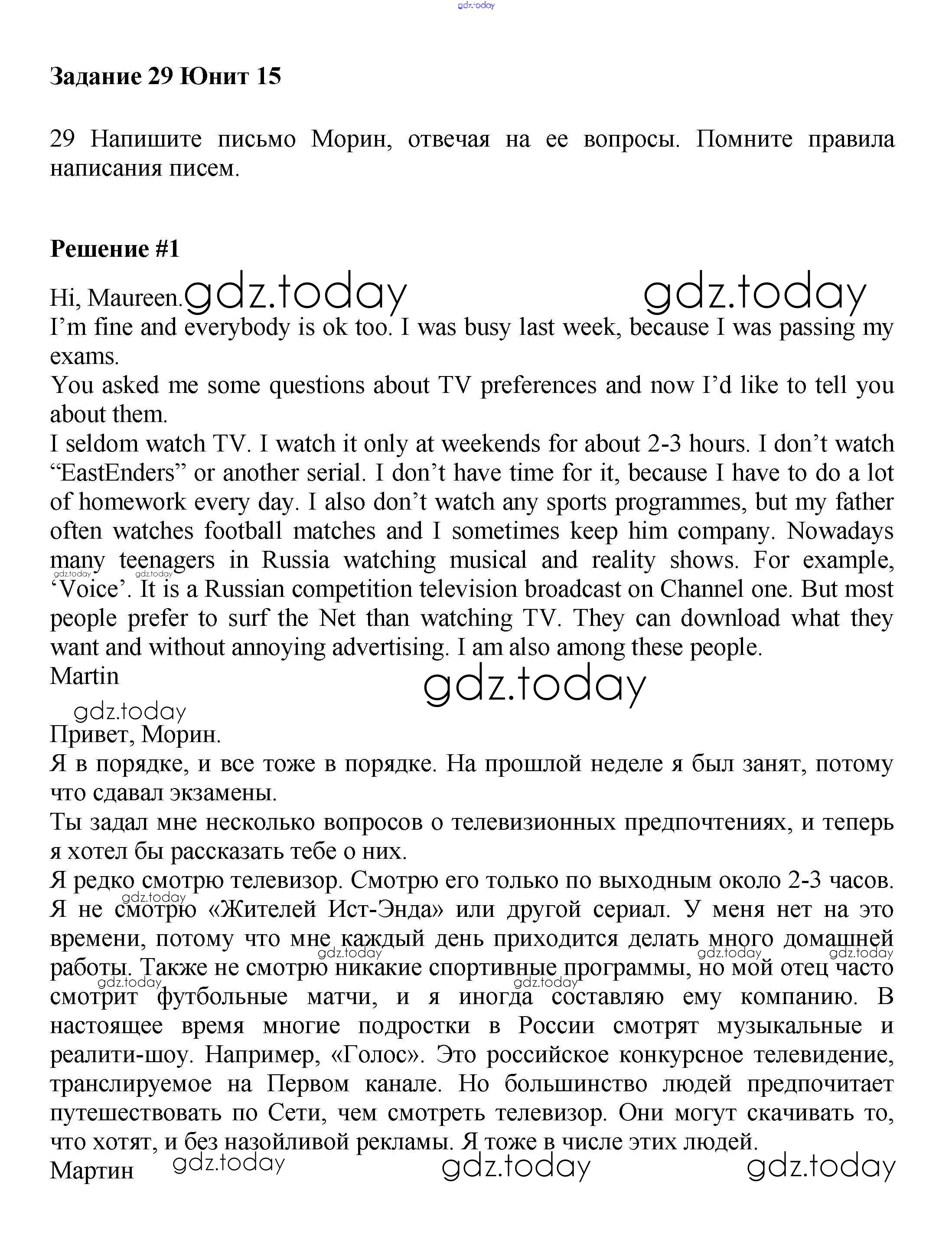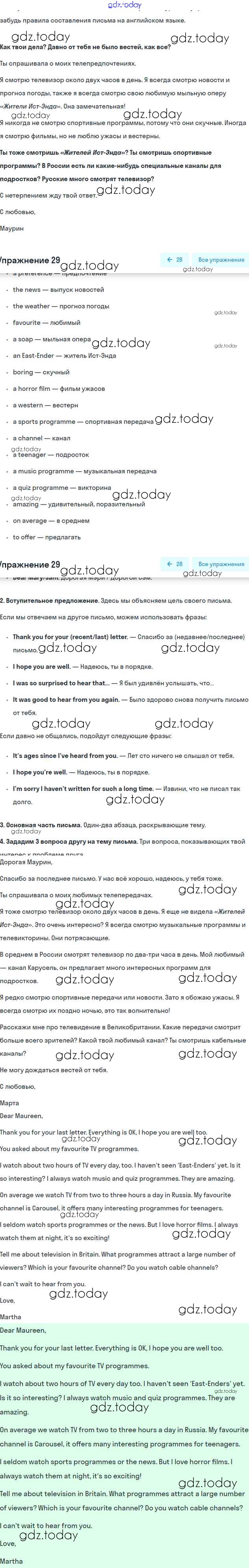 На страницах сайта gdz.today вы найдете учебный и вспомогательный материал, направленный на улучшения знаний школьной программы. ГДЗ - онлайн мир знаний Решение к Unit 15. TV watching Часть 2 29 Учебнику по Английскому языку для 6 класса Вербицкая, Гаярделли Вентана-граф Forward 2017