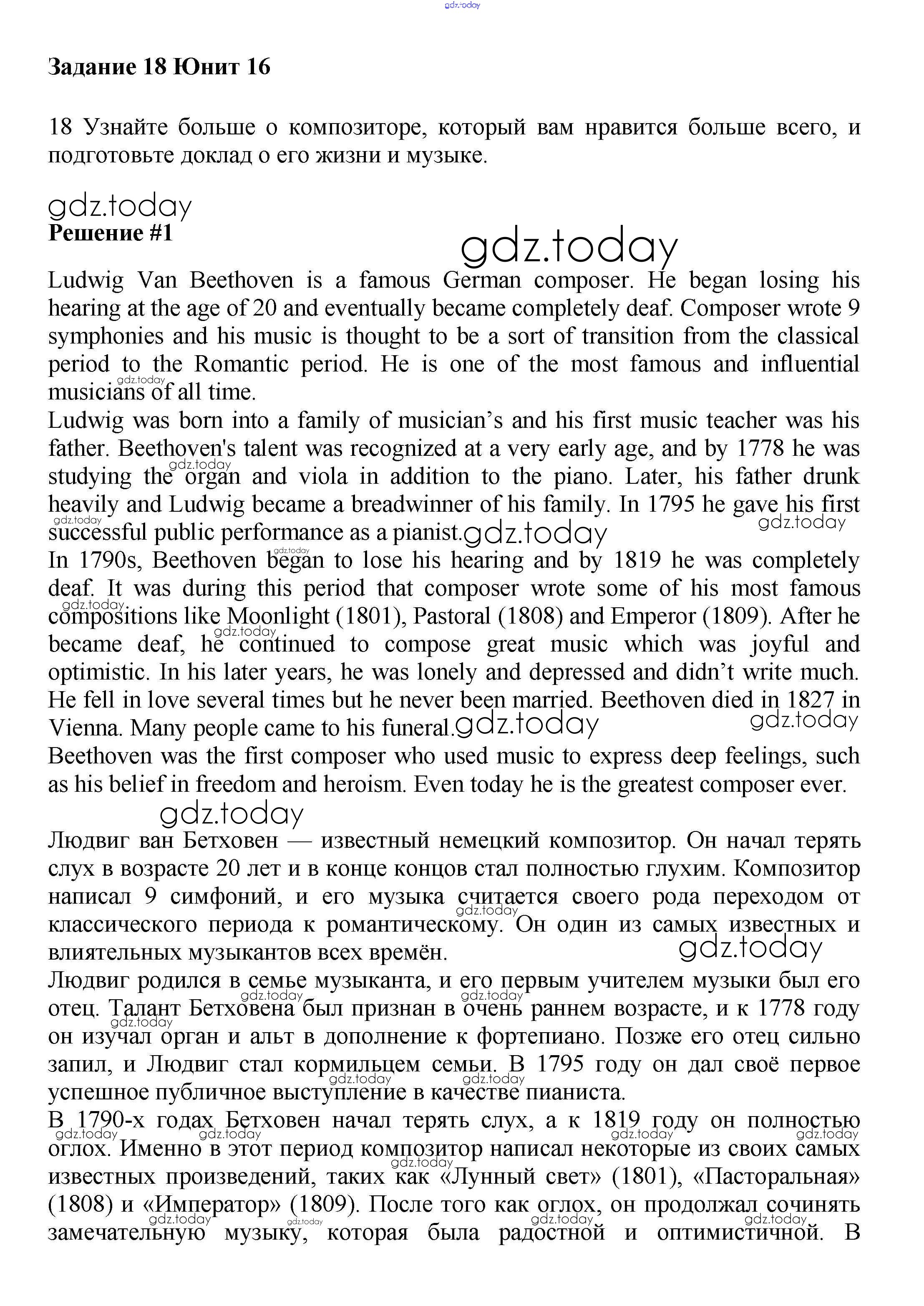 На страницах сайта gdz.today вы найдете учебный и вспомогательный материал, направленный на улучшения знаний школьной программы. ГДЗ - онлайн мир знаний Решение к Unit 16. The world of music Часть 2 18 Учебнику по Английскому языку для 6 класса Вербицкая, Гаярделли Вентана-граф Forward 2017
