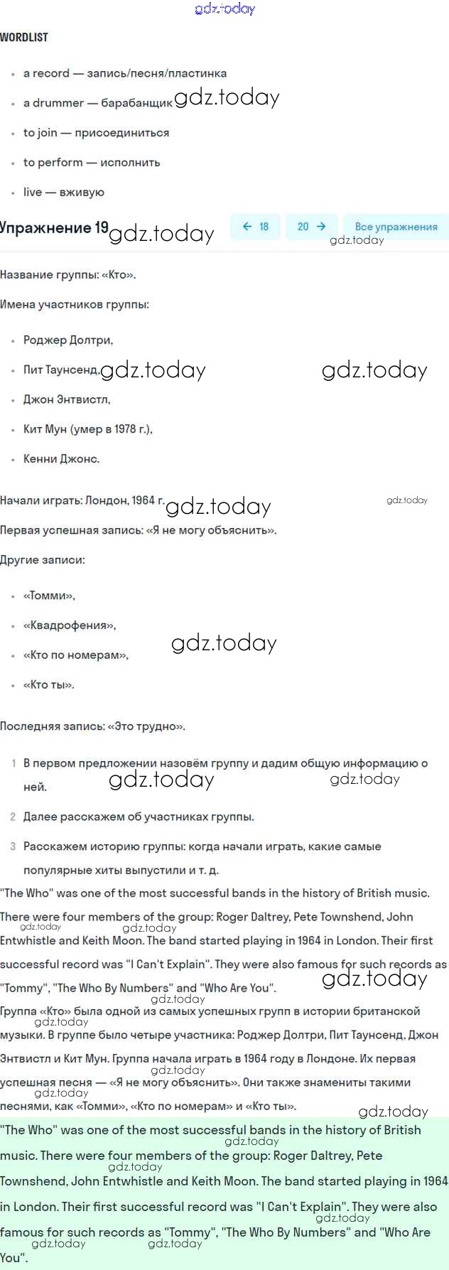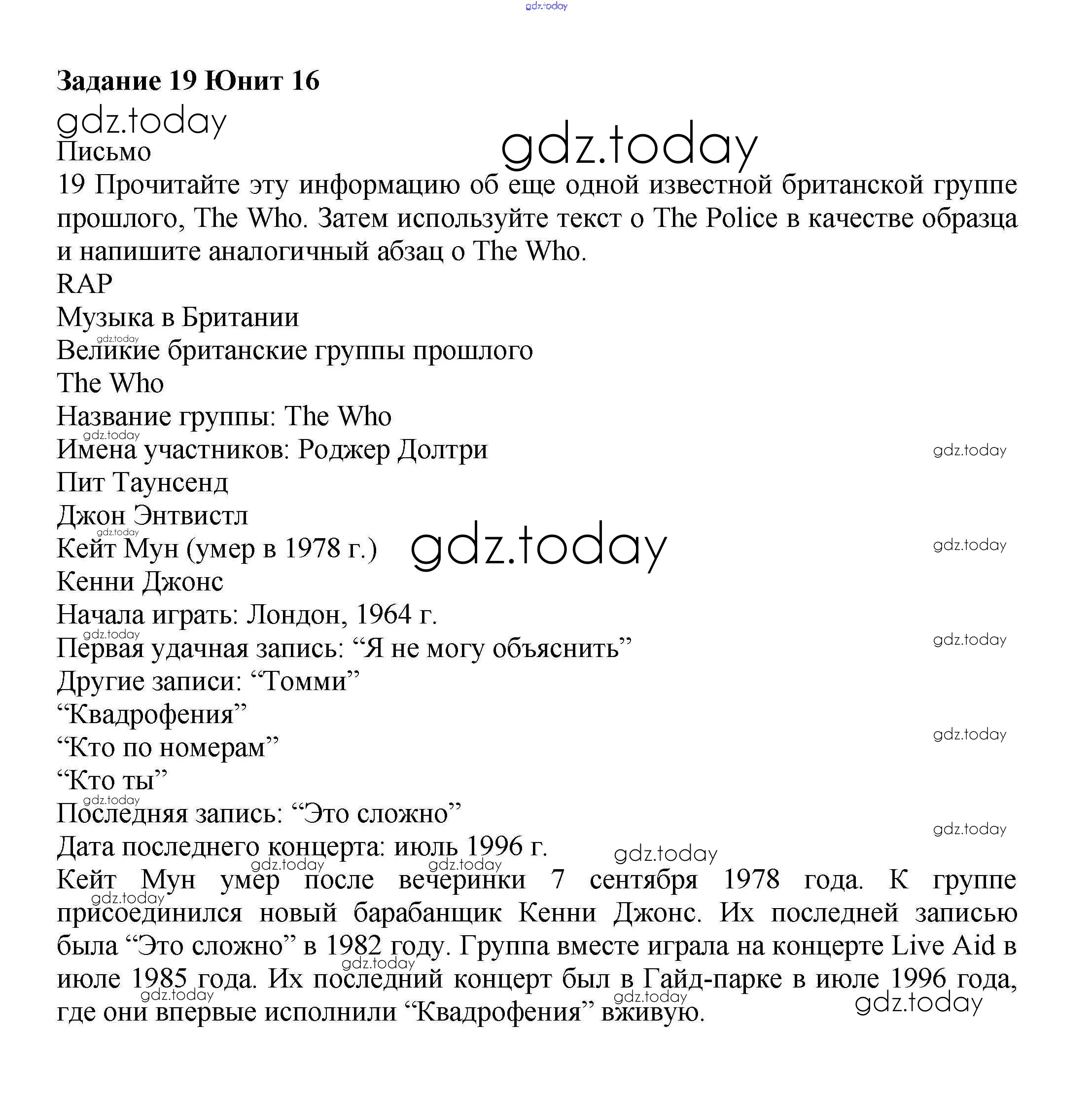 На страницах сайта gdz.today вы найдете учебный и вспомогательный материал, направленный на улучшения знаний школьной программы. ГДЗ - онлайн мир знаний Решение к Unit 16. The world of music Часть 2 19 Учебнику по Английскому языку для 6 класса Вербицкая, Гаярделли Вентана-граф Forward 2017