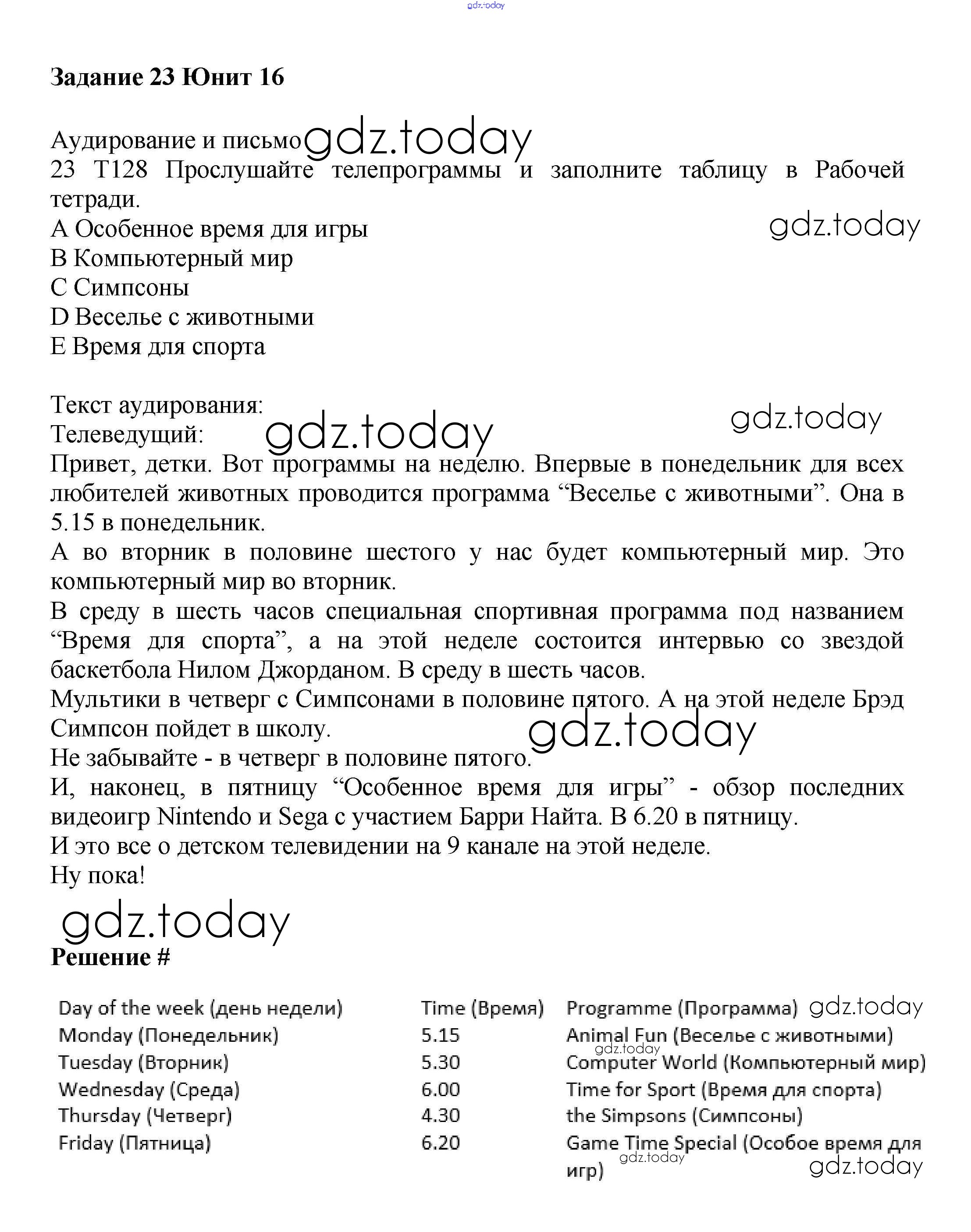 На страницах сайта gdz.today вы найдете учебный и вспомогательный материал, направленный на улучшения знаний школьной программы. ГДЗ - онлайн мир знаний Решение к Unit 16. The world of music Часть 2 23 Учебнику по Английскому языку для 6 класса Вербицкая, Гаярделли Вентана-граф Forward 2017