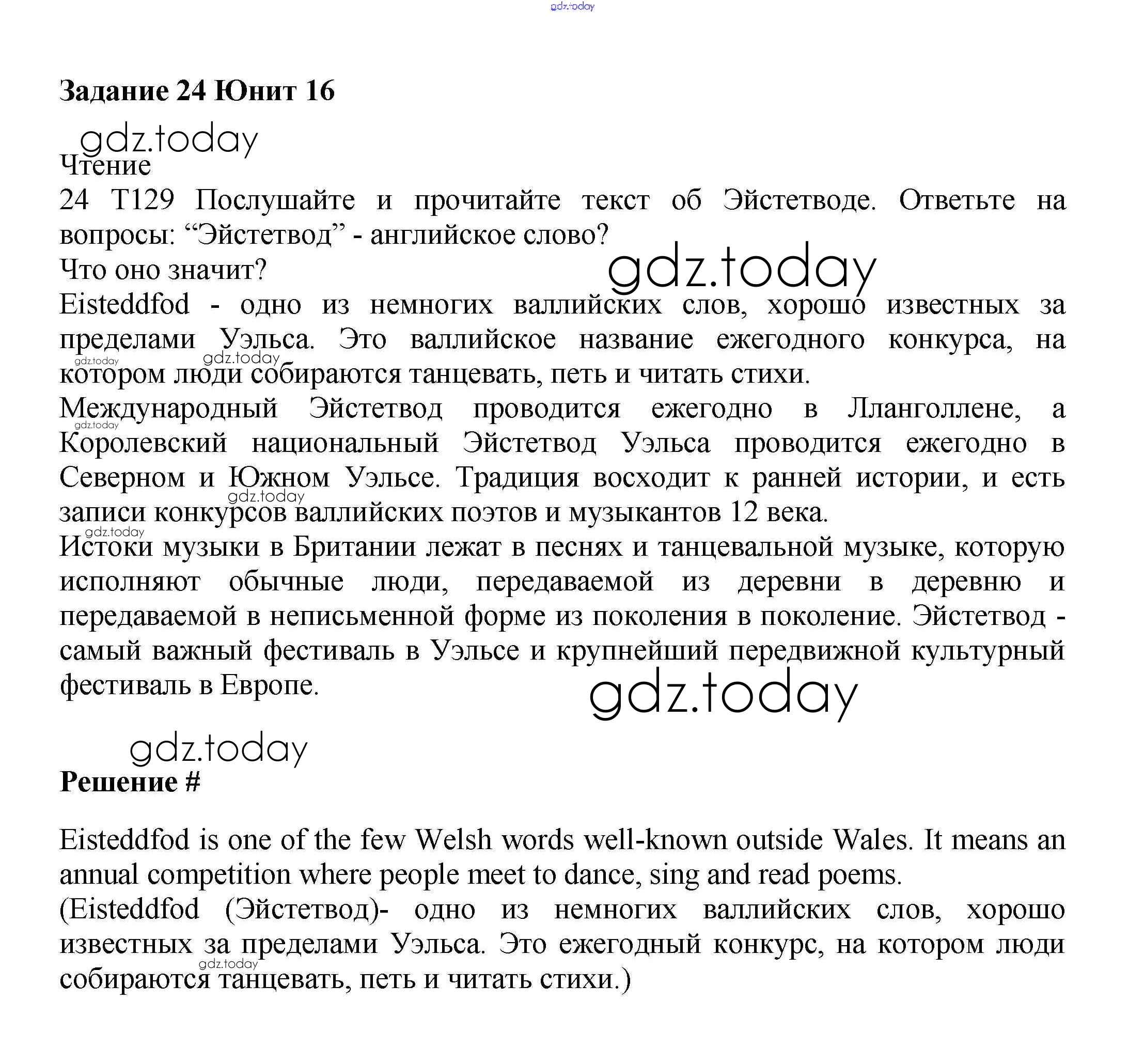 На страницах сайта gdz.today вы найдете учебный и вспомогательный материал, направленный на улучшения знаний школьной программы. ГДЗ - онлайн мир знаний Решение к Unit 16. The world of music Часть 2 24 Учебнику по Английскому языку для 6 класса Вербицкая, Гаярделли Вентана-граф Forward 2017