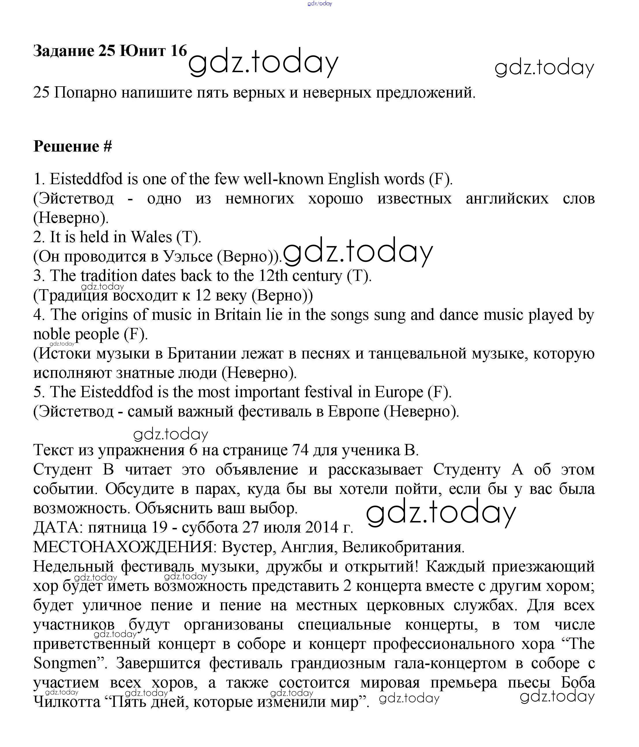 На страницах сайта gdz.today вы найдете учебный и вспомогательный материал, направленный на улучшения знаний школьной программы. ГДЗ - онлайн мир знаний Решение к Unit 16. The world of music Часть 2 25 Учебнику по Английскому языку для 6 класса Вербицкая, Гаярделли Вентана-граф Forward 2017