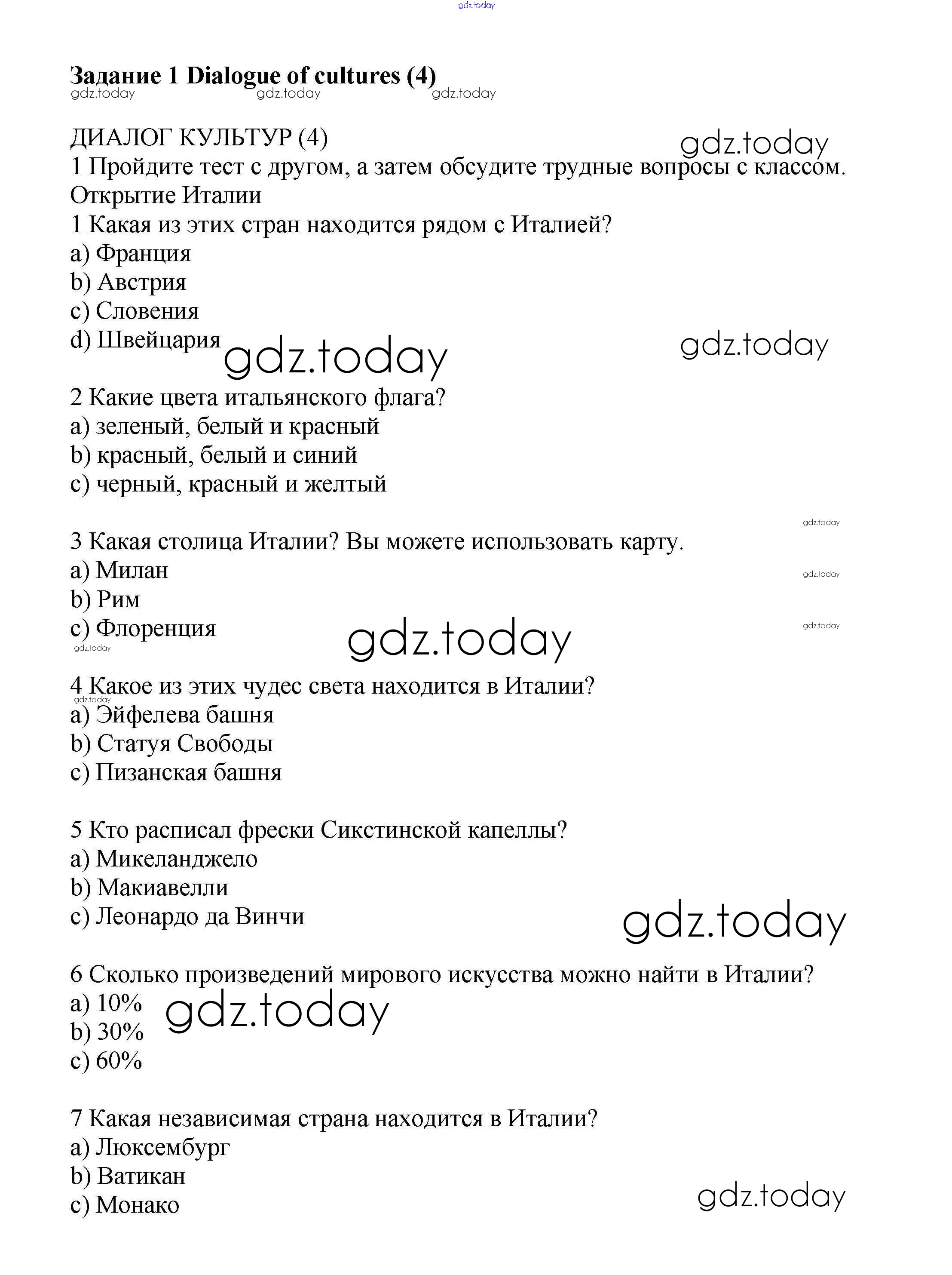 На страницах сайта gdz.today вы найдете учебный и вспомогательный материал, направленный на улучшения знаний школьной программы. ГДЗ - онлайн мир знаний Решение к Dialogue of cultures (4) Часть 2 1 Учебнику по Английскому языку для 6 класса Вербицкая, Гаярделли Вентана-граф Forward 2017