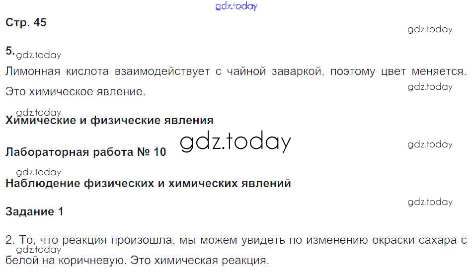 На страницах сайта gdz.today вы найдете учебный и вспомогательный материал, направленный на улучшения знаний школьной программы. ГДЗ - онлайн мир знаний Страницы (решение) 45 Рабочей тетради по Естествознанию для 6 класса Гуревич, Краснов Дрофа УМК 2019