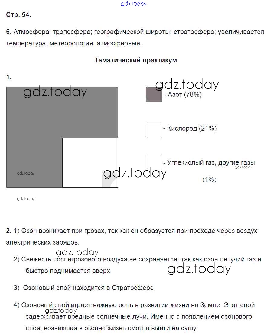 На страницах сайта gdz.today вы найдете учебный и вспомогательный материал, направленный на улучшения знаний школьной программы. ГДЗ - онлайн мир знаний Страницы (решение) 54 Рабочей тетради по Географии для 6 класса Домогацких Русское слово Инновационная школа 2019