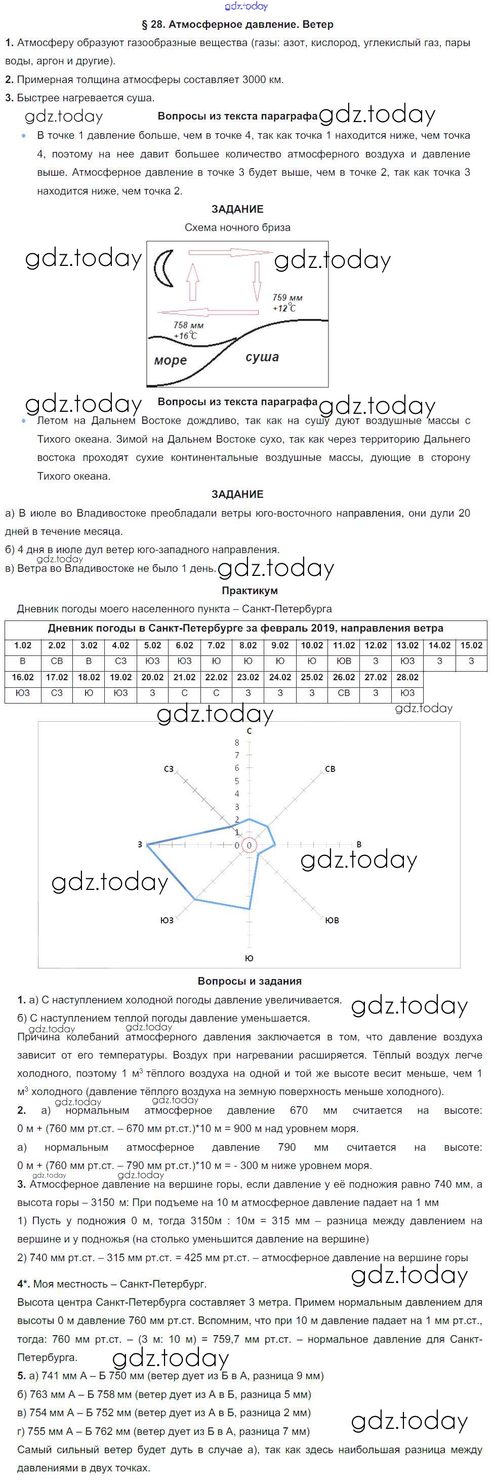 На страницах сайта gdz.today вы найдете учебный и вспомогательный материал, направленный на улучшения знаний школьной программы. ГДЗ - онлайн мир знаний Решение к параграфам §28. Атмосферное давление. Ветер Учебнику по Географии для 6 класса Герасимова, Неклюкова Дрофа Вертикаль 2019