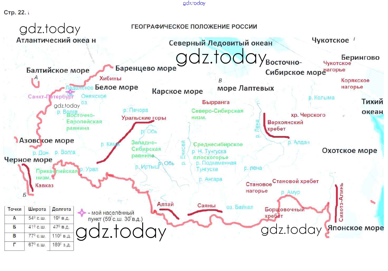 На страницах сайта gdz.today вы найдете учебный и вспомогательный материал, направленный на улучшения знаний школьной программы. ГДЗ - онлайн мир знаний Старое издание (решение) стр.22 Контурным картам по Географии для 6 класса Курчина, Курбский Дрофа 2019