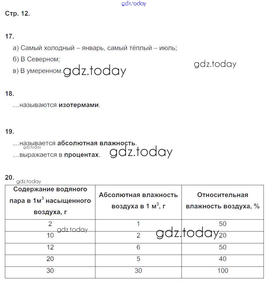 Ответы к Решение к теме "Атмосфера" (страницы тетради) 12 Рабочей тетради по Географии для 6 класса Дронов, Савельева Дрофа Вертикаль 2016