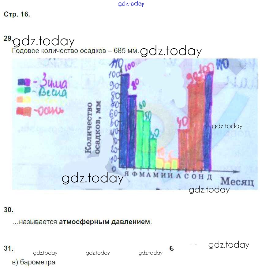 Ответы к Решение к теме "Атмосфера" (страницы тетради) 16 Рабочей тетради по Географии для 6 класса Дронов, Савельева Дрофа Вертикаль 2016