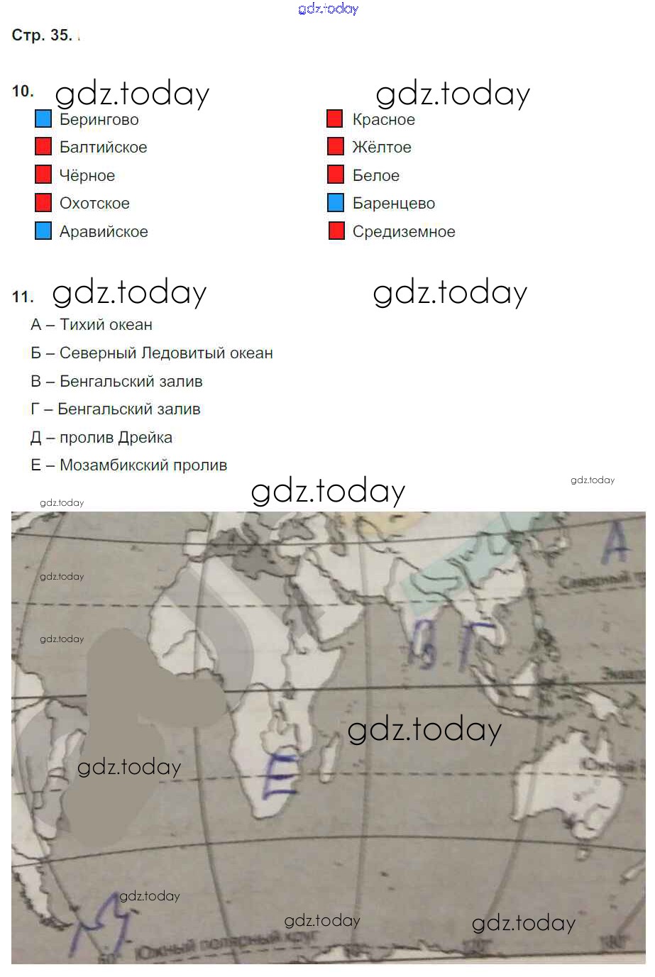 На страницах сайта gdz.today вы найдете учебный и вспомогательный материал, направленный на улучшения знаний школьной программы. ГДЗ - онлайн мир знаний Решение к теме "Гидросфера" (страницы тетради) 35 Рабочей тетради по Географии для 6 класса Дронов, Савельева Дрофа Вертикаль 2016