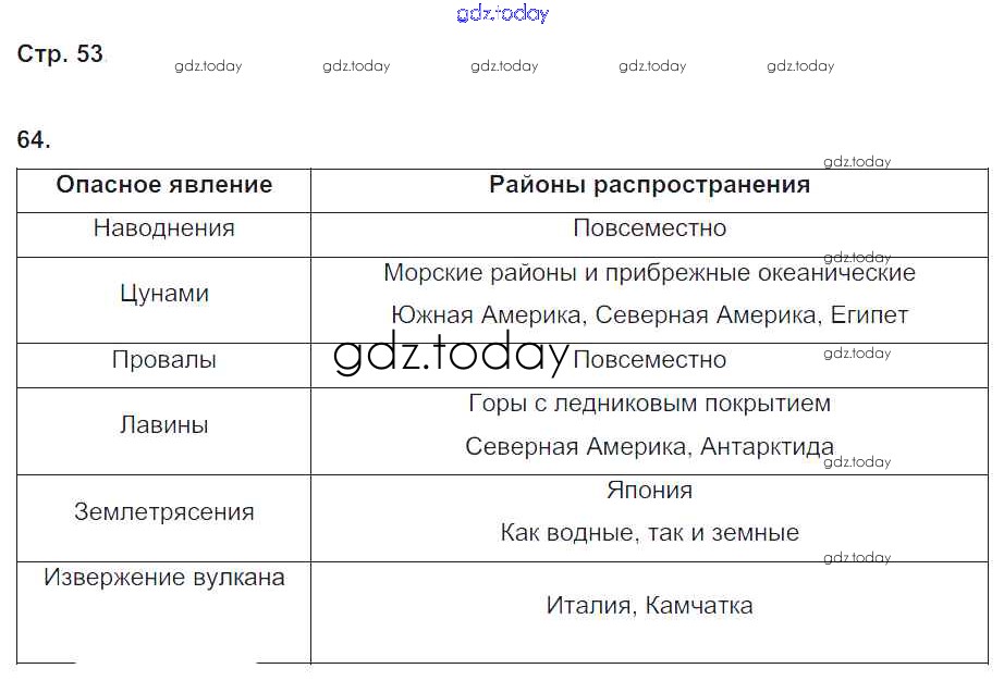 На страницах сайта gdz.today вы найдете учебный и вспомогательный материал, направленный на улучшения знаний школьной программы. ГДЗ - онлайн мир знаний Решение к теме "Гидросфера" (страницы тетради) 53 Рабочей тетради по Географии для 6 класса Дронов, Савельева Дрофа Вертикаль 2016