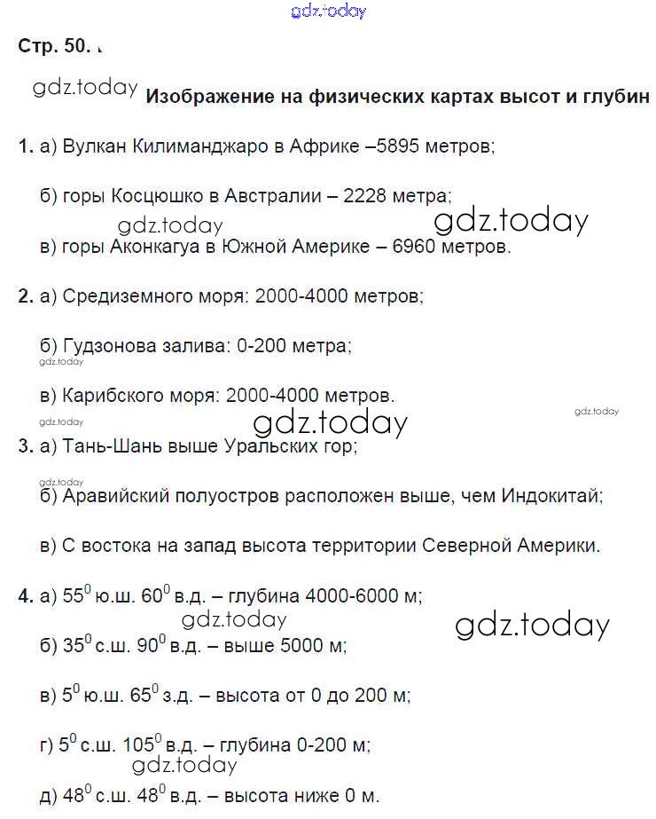 Ответы к Страницы (решение) 50 Рабочей тетради по Географии для 6 класса Карташева, Курчина Дрофа Вертикаль 2020