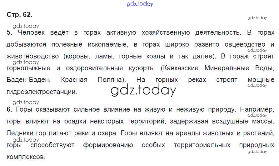 На страницах сайта gdz.today вы найдете учебный и вспомогательный материал, направленный на улучшения знаний школьной программы. ГДЗ - онлайн мир знаний Страницы (решение) 62 Рабочей тетради по Географии для 6 класса Карташева, Курчина Дрофа Вертикаль 2020