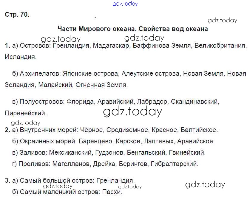На страницах сайта gdz.today вы найдете учебный и вспомогательный материал, направленный на улучшения знаний школьной программы. ГДЗ - онлайн мир знаний Страницы (решение) 70 Рабочей тетради по Географии для 6 класса Карташева, Курчина Дрофа Вертикаль 2020