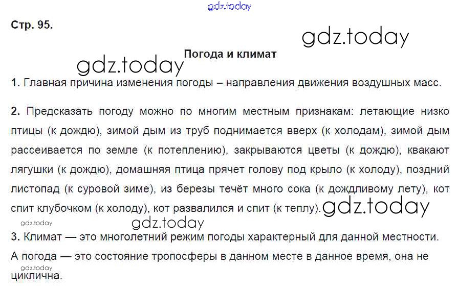 На страницах сайта gdz.today вы найдете учебный и вспомогательный материал, направленный на улучшения знаний школьной программы. ГДЗ - онлайн мир знаний Страницы (решение) 95 Рабочей тетради по Географии для 6 класса Карташева, Курчина Дрофа Вертикаль 2020