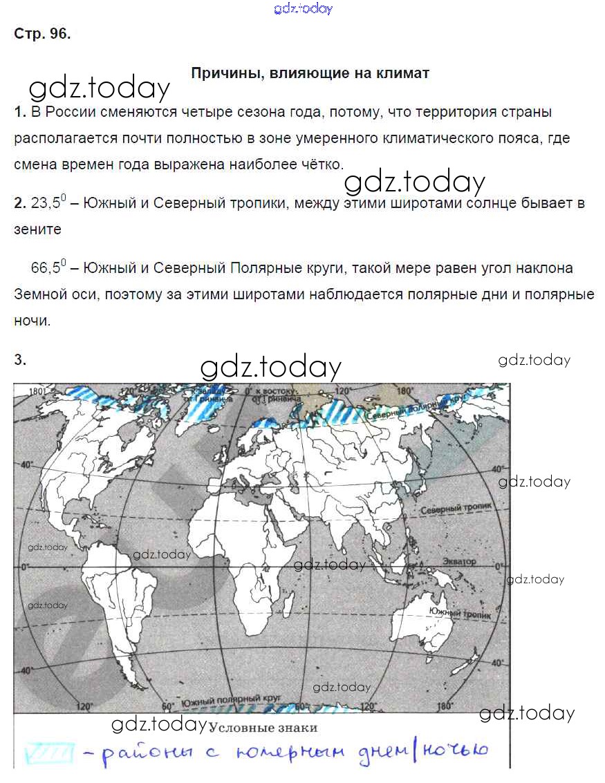 Ответы к Страницы (решение) 96 Рабочей тетради по Географии для 6 класса Карташева, Курчина Дрофа Вертикаль 2020