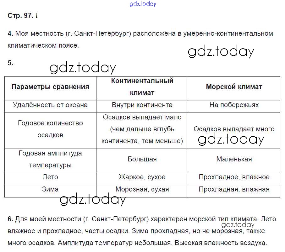 Ответы к Страницы (решение) 97 Рабочей тетради по Географии для 6 класса Карташева, Курчина Дрофа Вертикаль 2020