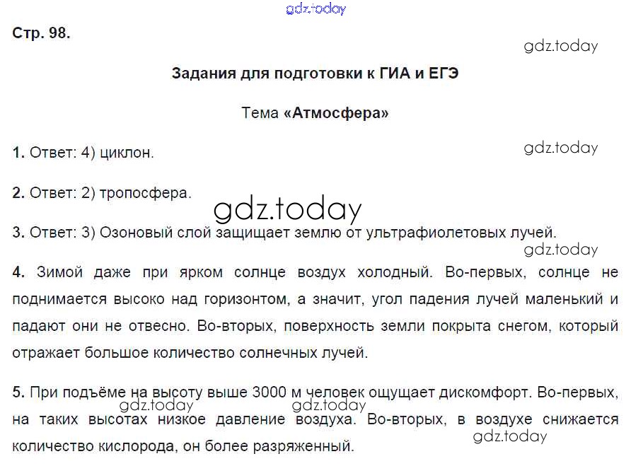 На страницах сайта gdz.today вы найдете учебный и вспомогательный материал, направленный на улучшения знаний школьной программы. ГДЗ - онлайн мир знаний Страницы (решение) 98 Рабочей тетради по Географии для 6 класса Карташева, Курчина Дрофа Вертикаль 2020