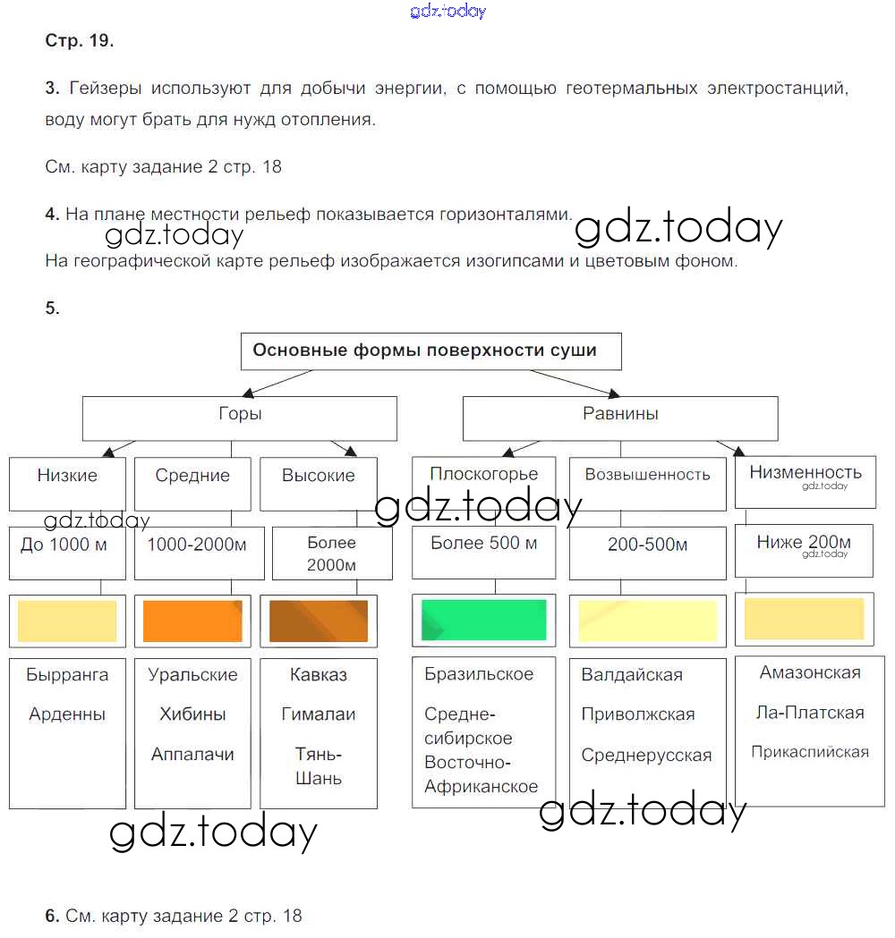 Ответы к Страницы (решение) 19 Рабочей тетради с контурными картами по Географии для 6 класса Баринова, Суслов Экзамен УМК 2010