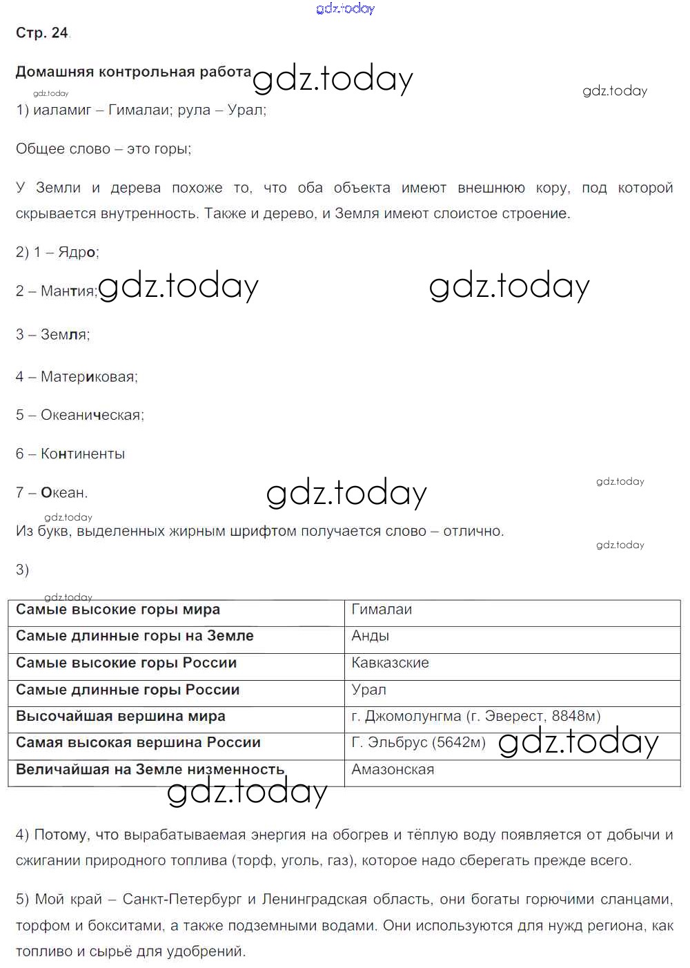 Ответы к Страницы (решение) 24 Рабочей тетради с контурными картами по Географии для 6 класса Баринова, Суслов Экзамен УМК 2010