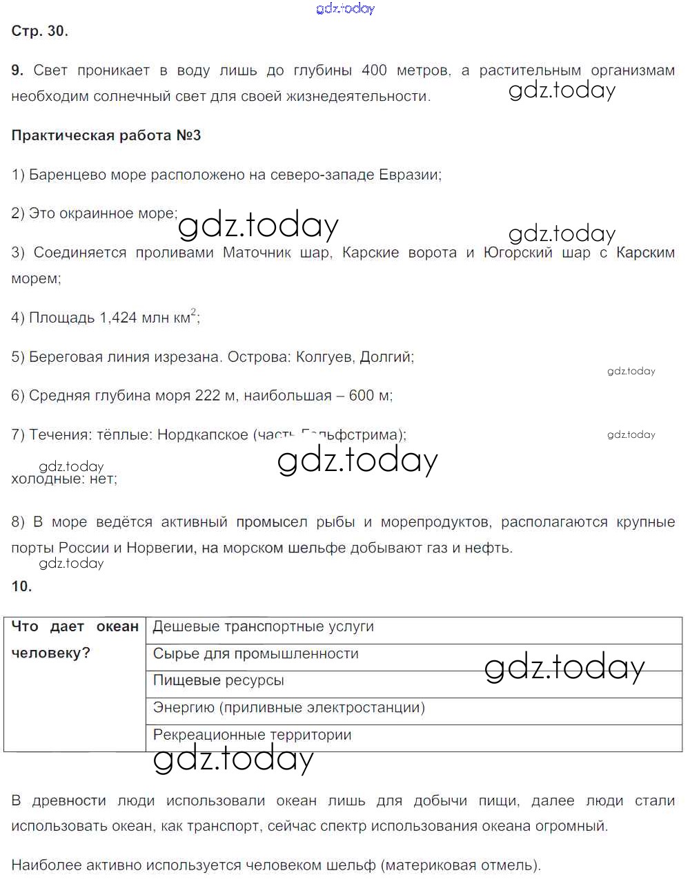 Ответы к Страницы (решение) 30 Рабочей тетради с контурными картами по Географии для 6 класса Баринова, Суслов Экзамен УМК 2010