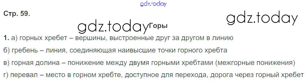 На страницах сайта gdz.today вы найдете учебный и вспомогательный материал, направленный на улучшения знаний школьной программы. ГДЗ - онлайн мир знаний Страницы (решение) 59 Рабочей тетради по Географии для 6 класса Румянцев, Ким Дрофа Вертикаль 2015