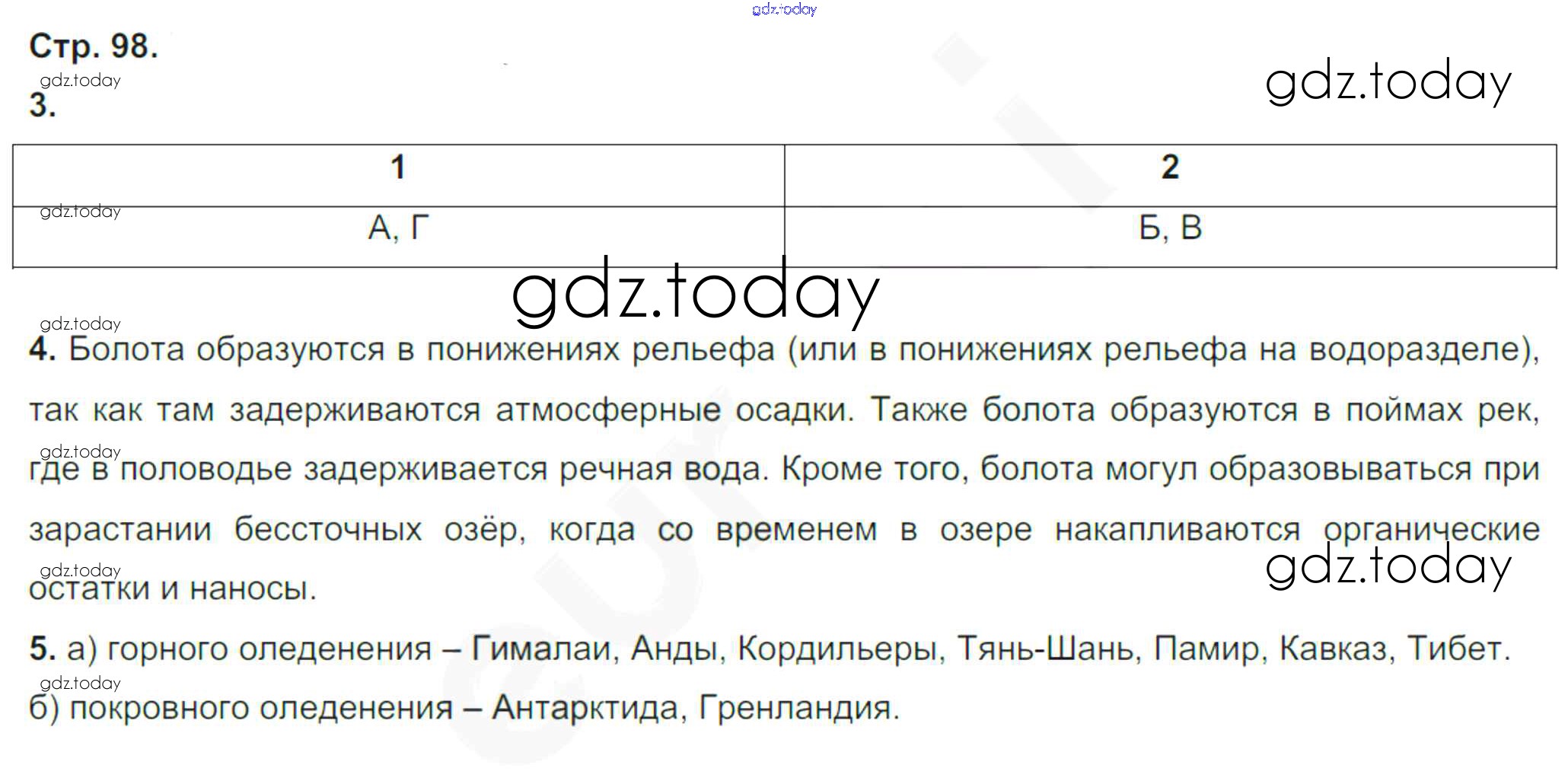 Ответы к Страницы (решение) 98 Рабочей тетради по Географии для 6 класса Румянцев, Ким Дрофа Вертикаль 2015