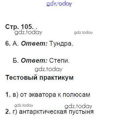 На страницах сайта gdz.today вы найдете учебный и вспомогательный материал, направленный на улучшения знаний школьной программы. ГДЗ - онлайн мир знаний Страницы (решение) 105 Тетради-практикуму по Географии для 6 класса Болотникова Русское слово Инновационная школа 2017
