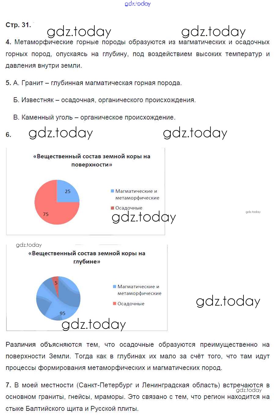 На страницах сайта gdz.today вы найдете учебный и вспомогательный материал, направленный на улучшения знаний школьной программы. ГДЗ - онлайн мир знаний Страницы (решение) 31 Тетради-практикуму по Географии для 6 класса Болотникова Русское слово Инновационная школа 2017