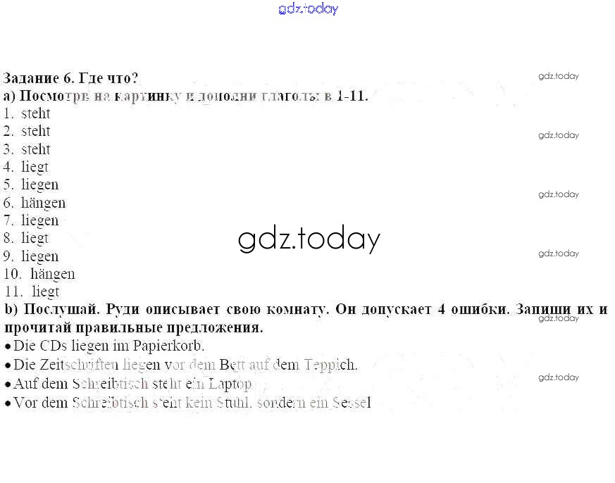 На страницах сайта gdz.today вы найдете учебный и вспомогательный материал, направленный на улучшения знаний школьной программы. ГДЗ - онлайн мир знаний Решение к главе 1 6 Учебнику по Немецкому языку для 6 класса Аверин, Джин Просвещение Horizonte 2016