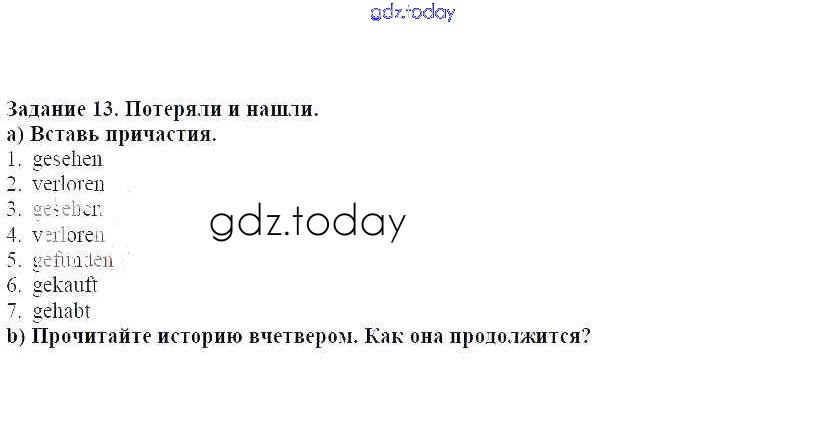 На страницах сайта gdz.today вы найдете учебный и вспомогательный материал, направленный на улучшения знаний школьной программы. ГДЗ - онлайн мир знаний Решение к главе 6 13 Учебнику по Немецкому языку для 6 класса Аверин, Джин Просвещение Horizonte 2016