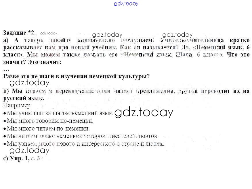 На страницах сайта gdz.today вы найдете учебный и вспомогательный материал, направленный на улучшения знаний школьной программы. ГДЗ - онлайн мир знаний Введение (Задания) 2 Учебнику по Немецкому языку для 6 класса Бим, Садомова Просвещение 2014