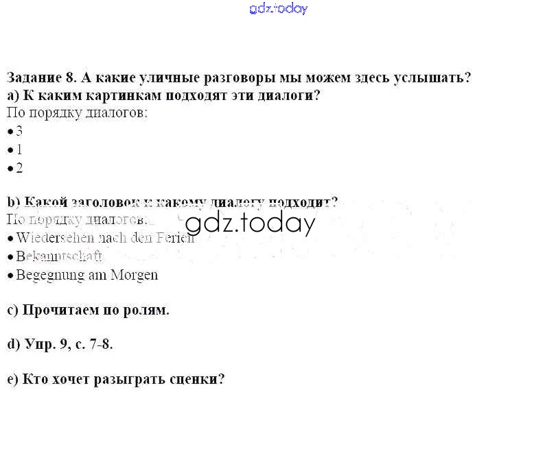 На страницах сайта gdz.today вы найдете учебный и вспомогательный материал, направленный на улучшения знаний школьной программы. ГДЗ - онлайн мир знаний Введение (Задания) 8 Учебнику по Немецкому языку для 6 класса Бим, Садомова Просвещение 2014