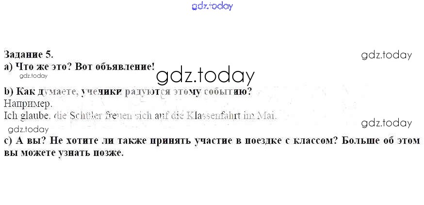 На страницах сайта gdz.today вы найдете учебный и вспомогательный материал, направленный на улучшения знаний школьной программы. ГДЗ - онлайн мир знаний Раздел 1 Решение к главе 1 (Разделы) 5 Учебнику по Немецкому языку для 6 класса Бим, Садомова Просвещение 2014