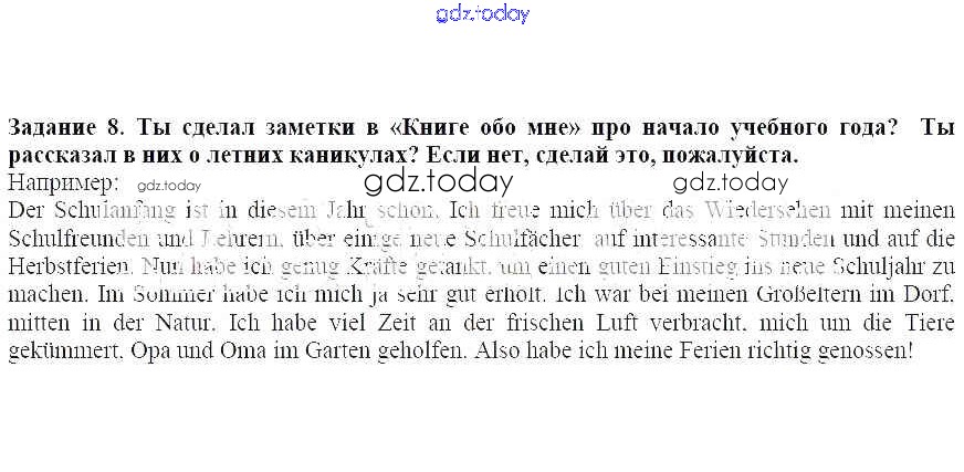 На страницах сайта gdz.today вы найдете учебный и вспомогательный материал, направленный на улучшения знаний школьной программы. ГДЗ - онлайн мир знаний Раздел 6 Решение к главе 1 (Разделы) 8 Учебнику по Немецкому языку для 6 класса Бим, Садомова Просвещение 2014