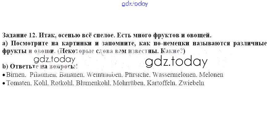 На страницах сайта gdz.today вы найдете учебный и вспомогательный материал, направленный на улучшения знаний школьной программы. ГДЗ - онлайн мир знаний Раздел 1 Решение к главе 2 (Разделы) 12 Учебнику по Немецкому языку для 6 класса Бим, Садомова Просвещение 2014