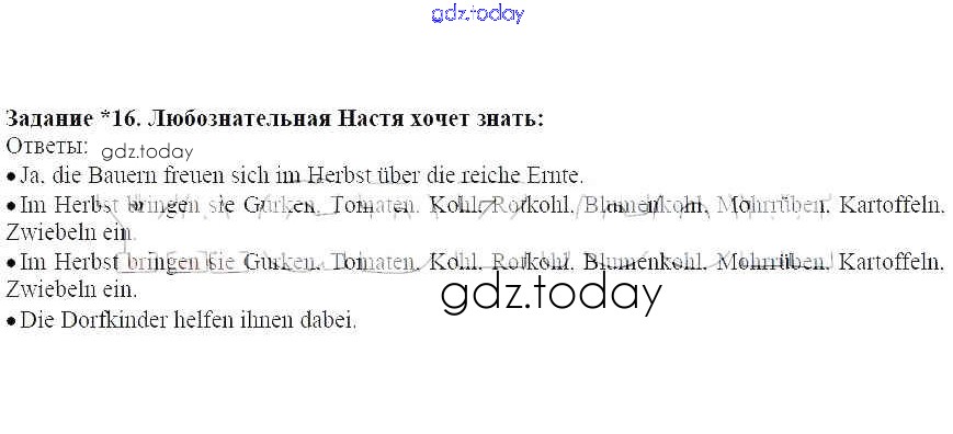 На страницах сайта gdz.today вы найдете учебный и вспомогательный материал, направленный на улучшения знаний школьной программы. ГДЗ - онлайн мир знаний Раздел 1 Решение к главе 2 (Разделы) 16 Учебнику по Немецкому языку для 6 класса Бим, Садомова Просвещение 2014