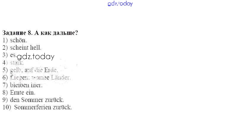 На страницах сайта gdz.today вы найдете учебный и вспомогательный материал, направленный на улучшения знаний школьной программы. ГДЗ - онлайн мир знаний Раздел 1 Решение к главе 2 (Разделы) 8 Учебнику по Немецкому языку для 6 класса Бим, Садомова Просвещение 2014